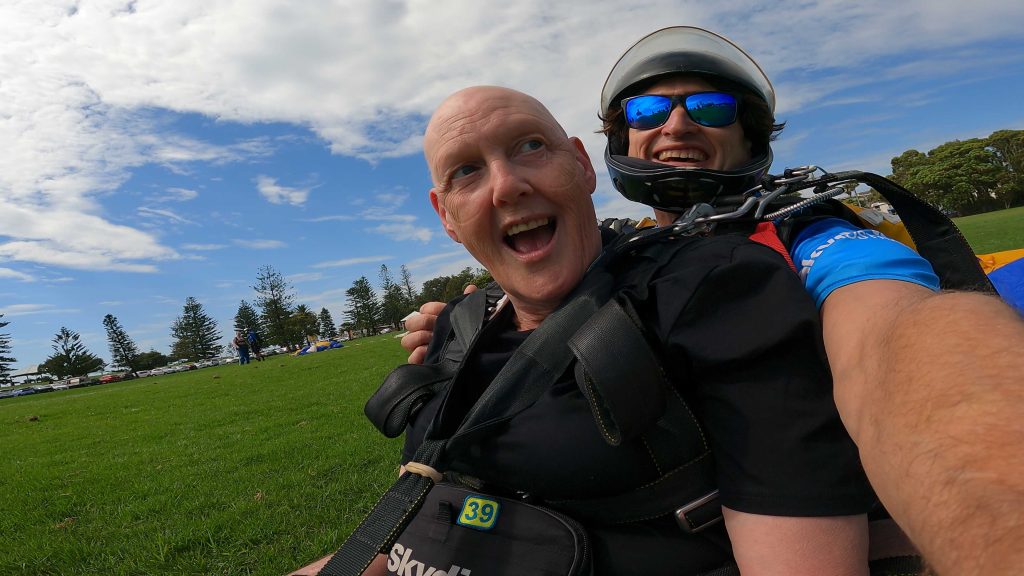 It isn’t every day that we get a customer as special as Jocelyn. Fighting a terminal cancer diagnosis, one of Jocelyn’s biggest bucket list wishes was to go tandem skydiving. She recently joined us at our Wollongong drop zone, where tandem instructor Biggsy and the team were able to make this wish come true.